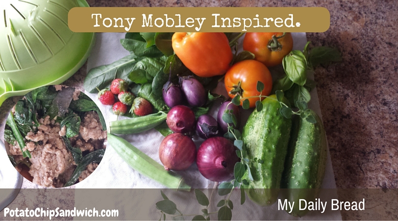 The hamburger went first. While it was cooking I cut up the onions and tossed them in the mix. I also threw in the basil, oregano, and a little sea salt. Once the hamburger was done I chunked in the okra, eggplant, cucumber and spinach. And I cooked it till I thought it was ready.